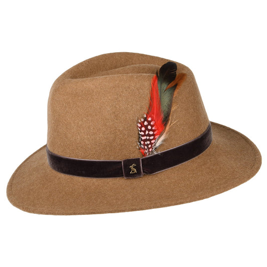 Chapeau Fedora en Feutre avec Bandeau en Velours beige sable JOULES
