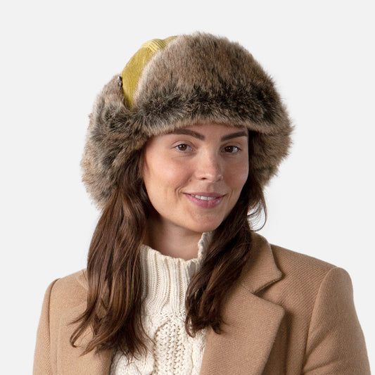 Chapka Bomber en Velours Côtelé et Fausse Fourrure ocre BARTS