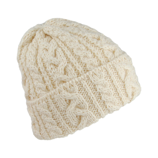 Bonnet en Laine Anglaise à Torsades et Revers naturel HIGHLAND 2000
