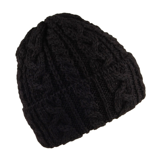 Bonnet en Laine Anglaise à Torsades et Revers noir HIGHLAND 2000