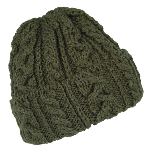 Bonnet en Laine Anglaise à Torsades et Revers olive HIGHLAND 2000