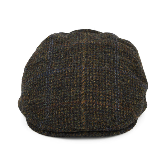 Casquette Plate en HARRIS TWEED à Carreaux Stornoway olive et mix de couleurs FAILSWORTH