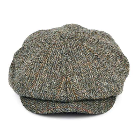 Casquette Plate en HARRIS TWEED à Chevrons Stornoway olive mélangé FAILSWORTH