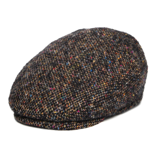 Casquette Gavroche en Tweed du Donegal Épais à Chevrons Glencoagh noir-anthracite JAXON & JAMES