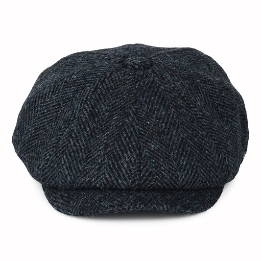 Casquette Plate en HARRIS TWEED à Chevrons Ardmore bleu-noir JAXON & JAMES