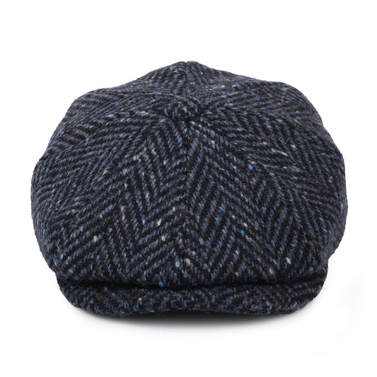 Casquette Gavroche en Tweed du Donegal Épais à Chevrons Pettigo bleu marine-noir JAXON & JAMES