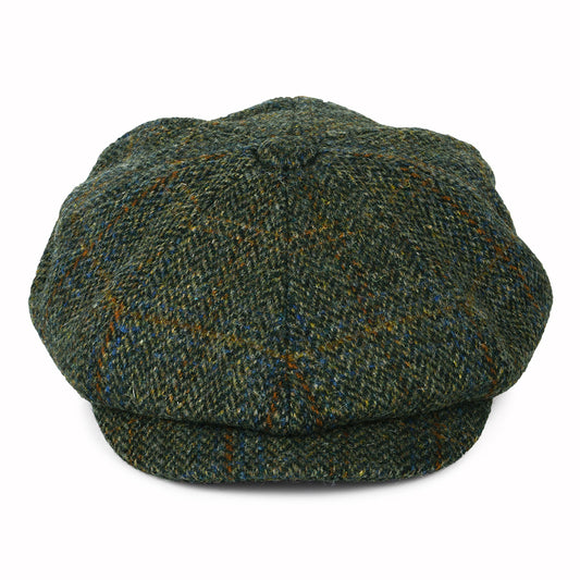 Casquette Plate en HARRIS TWEED à carreaux et Chevrons Stornoway vert-bleu FAILSWORTH