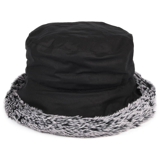 Chapeau Bob en Coton Ciré Rebord en Fausse Fourrure noir FAILSWORTH