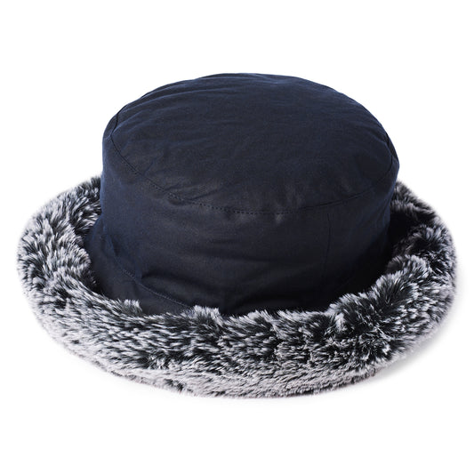 Chapeau Bob en Coton Ciré Rebord en Fausse Fourrure noir FAILSWORTH