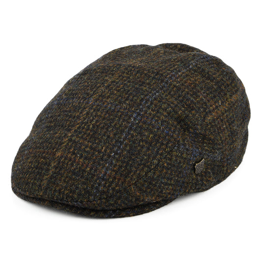 Casquette Plate en HARRIS TWEED à Carreaux Stornoway olive et mix de couleurs FAILSWORTH