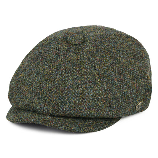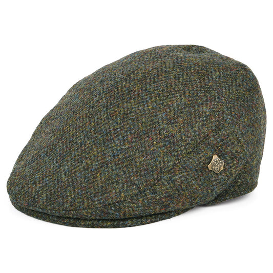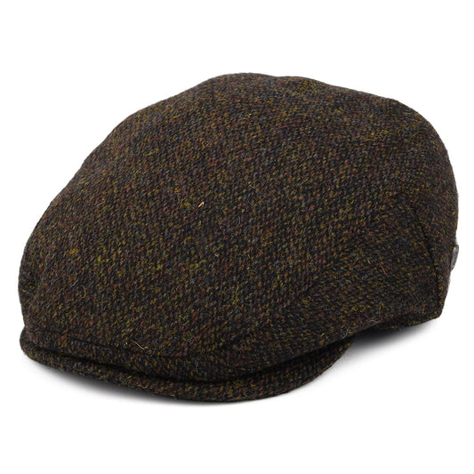 Casquette Plate en HARRIS TWEED à Chevrons Stornoway olive mélangé FAILSWORTH