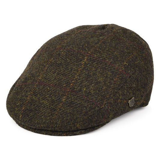 Casquette Plate en HARRIS TWEED à Chevrons Lundale olive-marron JAXON & JAMES