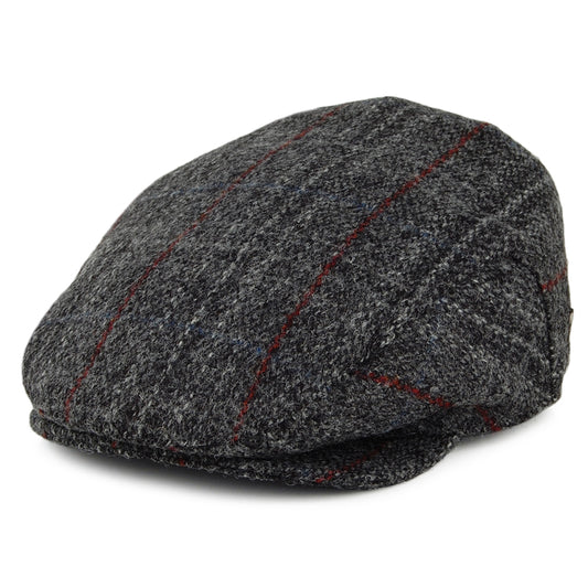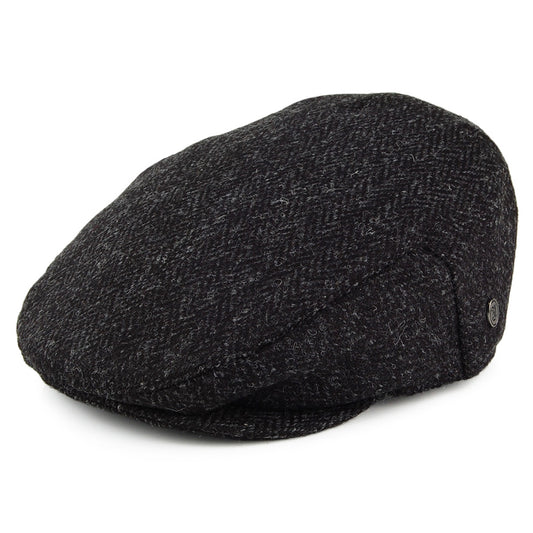 Casquette Plate en HARRIS TWEED à Chevrons Dunvegan noir-anthracite JAXON & JAMES