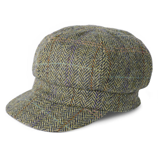 Casquette Gavroche en HARRIS TWEED à Carreaux Carloway olive et mix de couleurs FAILSWORTH
