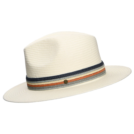 Chapeau Fedora en Paille Toyo avec Bandeau à Rayures ivoire SCALA