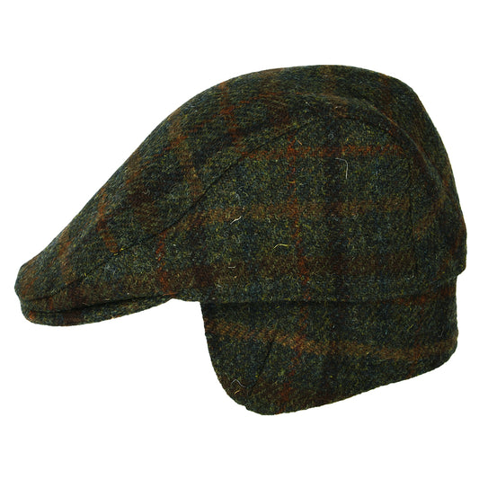 Casquette Plate en HARRIS TWEED Avec Protège-Oreilles à Carreaux Oban olive-rouille FAILSWORTH