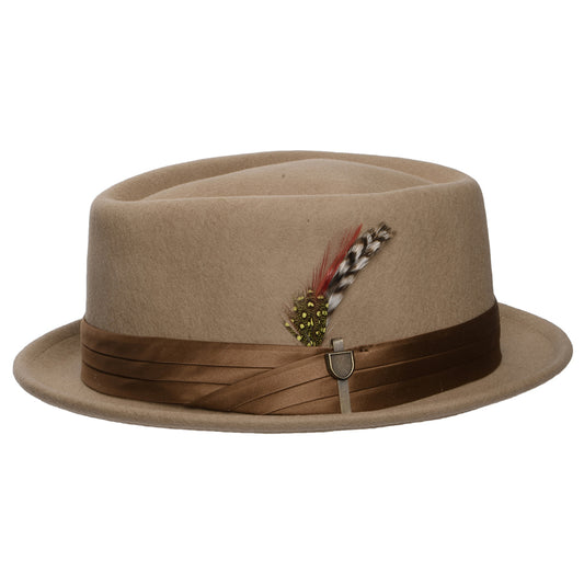 Chapeau Pork Pie Stout en Laine Feutrée beige sable BRIXTON