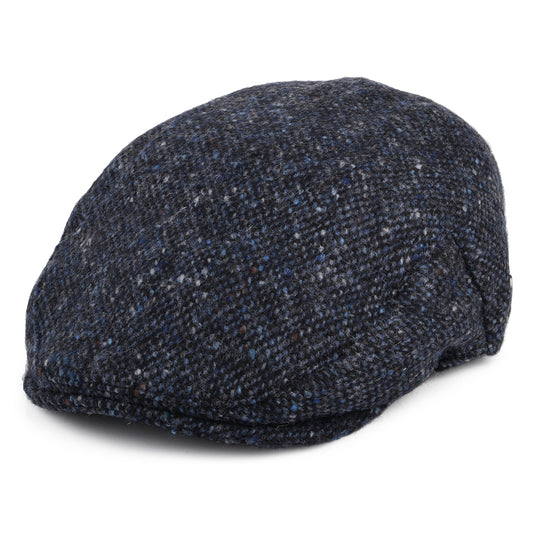 Casquette Gavroche en Tweed du Donegal Épais à Chevrons Pettigo bleu marine-noir JAXON & JAMES