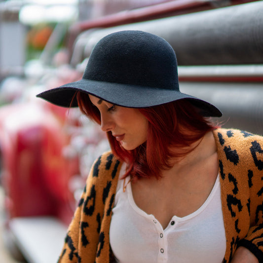 Chapeau Capeline en Laine Vintage noir SUR LA TÊTE