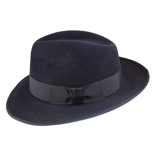 Chapeau Fedora en Fourrure Feutrée Gangster bleu marine CHRISTYS