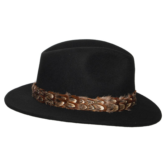 Chapeau Fedora Déformable Hydrofuge en Laine Feutrée avec Bandeau à Plumes Kansas noir DENTON