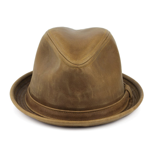 Chapeau Trilby en Cuir Vintage marron NEW YORK HAT COMPANY