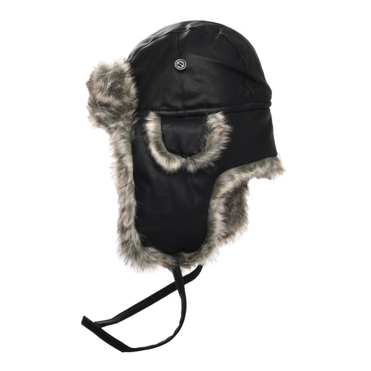 Chapeau Chapka en Similicuir Délavé noir JAXON & JAMES - VENTE EN GROS