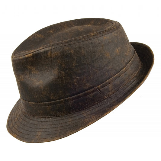 Chapeau Fedora Safari en Cuir Nubuck marron JAXON & JAMES - VENTE EN GROS
