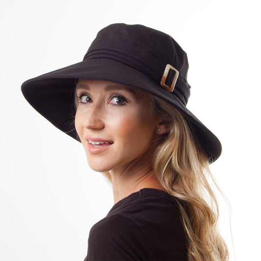 Chapeau Été Pliable en Lin Lotus noir SUR LA TETE