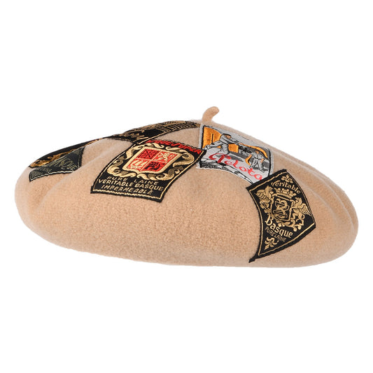 Béret en Laine Mérinos Eridan Vintage Patch sable LAULHÈRE