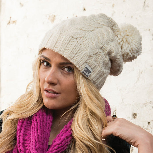 Bonnet Long à Pompon blanc hiver KUSAN
