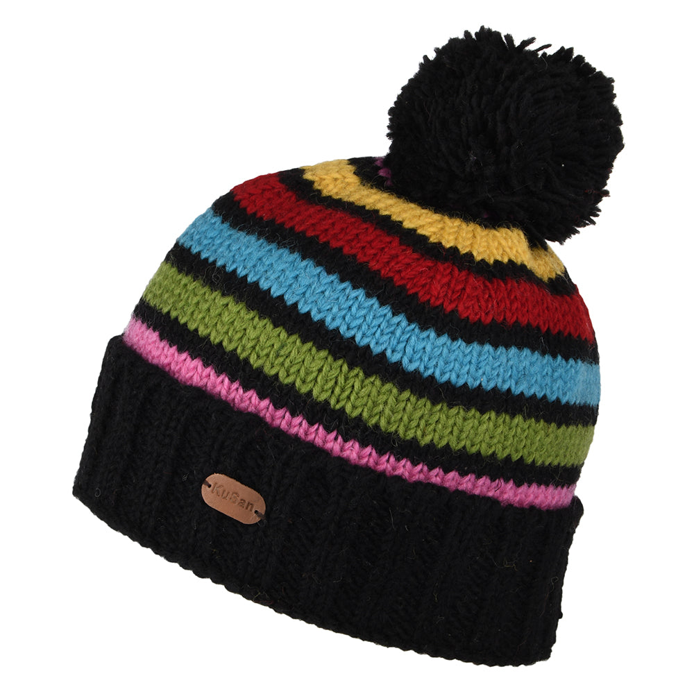 Bonnet à Pompon à Revers et à Rayures gris-rose-bleu KUSAN