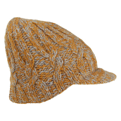 Voici le Bonnet à Visière à Torsades en caramel de chez KUSAN. Ce bonnet est fait à la main au Népal Ce bonnet est dotée d'une doublure en polaire pour plus de chaleur. Ce bonnet arbore également un insigne en cuir Kusan sur le côté.