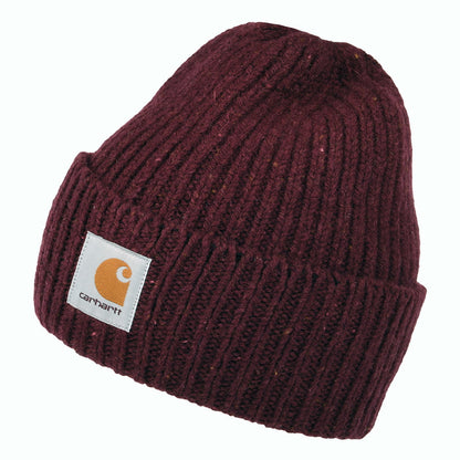 Voici le bonnet Anglistic vin de chez CARHARTT WIP. Constitué à partir d'un mélange de laine et de coton, ce superbe bonnet côtelé et moucheté est chaud et idéal pour l'hiver. Ce bonnet est orné d'un patch Carhartt sur son revers ainsi que d'un bouton à l'arrière permettant de rattacher le revers à la calotte.