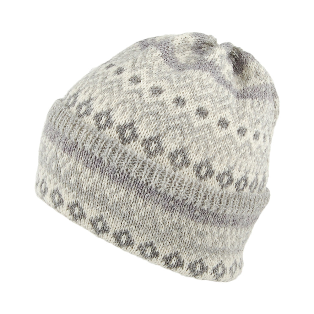 Bonnet en Laine à Revers Fair Isle gris clair HIGHLAND 2000