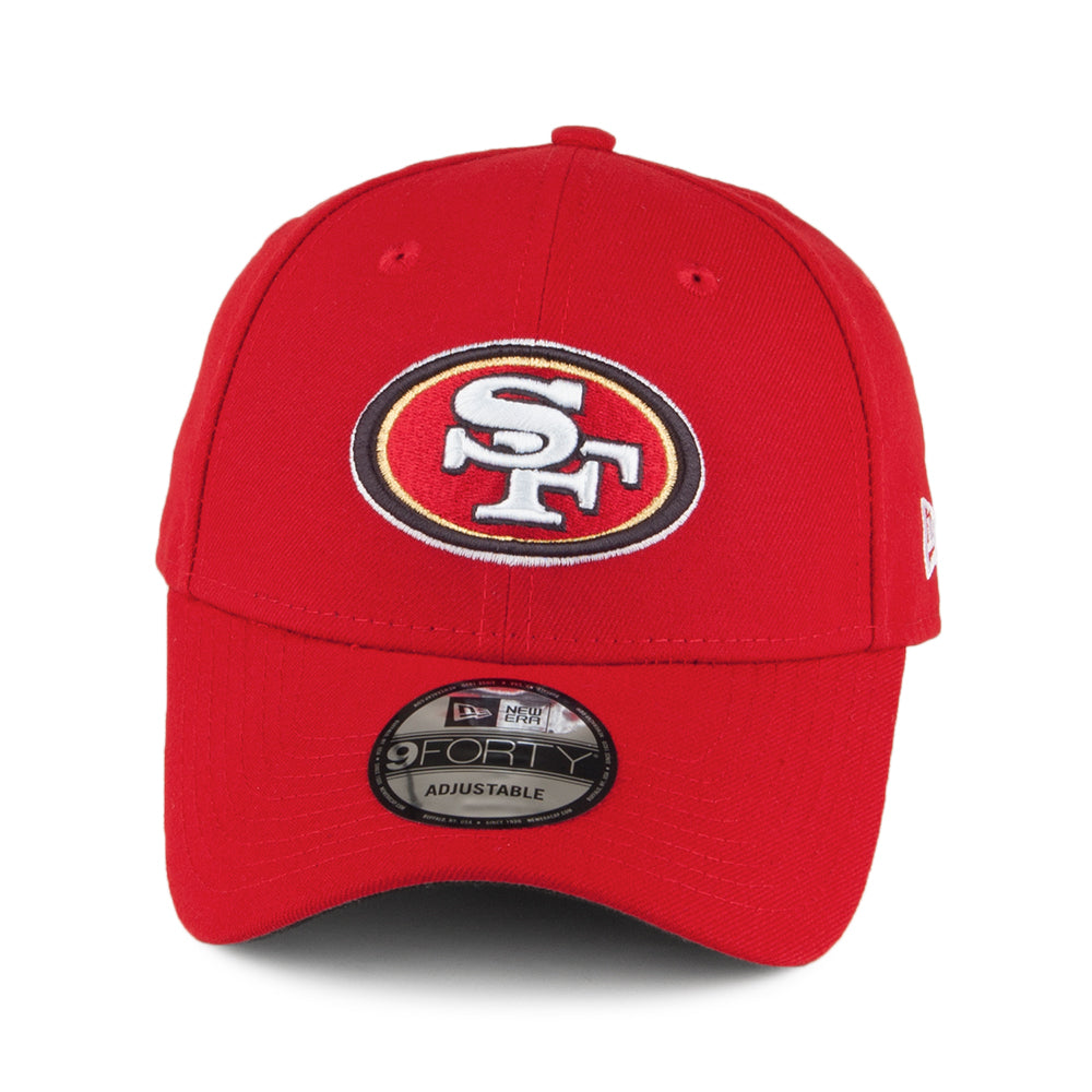 Voici la Casquette 9FORTY NFL The League San Francisco 49ers en rouge de chez New Era. La casquette est ornée du logo de l'équipe brodé sur ses pans avant et le drapeau New Era® brodé sur son côté gauche. Cette casquette à 6 pans est dotée d'œillets pour une meilleure aération, d'une visière incurvée et d'un bouton situé au sommet de sa calotte. L'arrière de la casquette, ouvert, présente un strap scratch ajustable sur lequel figurent le nom et logo de l'équipe.