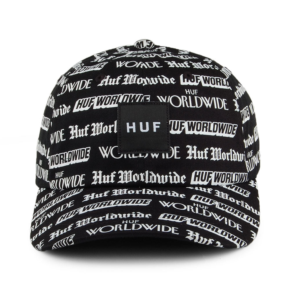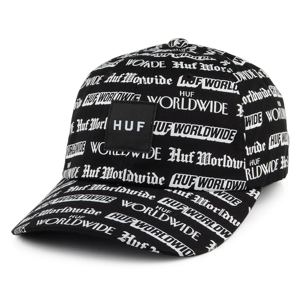 Voici la Casquette à Visière Incurvée Fake News en noir de chez HUF. Cette casquette présente un patch Huf cousu sur une calotte à motif de papier journal. Une étiquette Huf est cousue au strap ajustable à l'arrière.