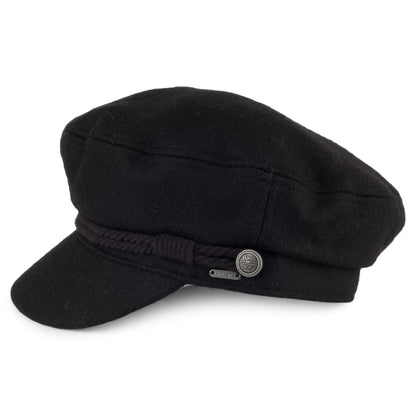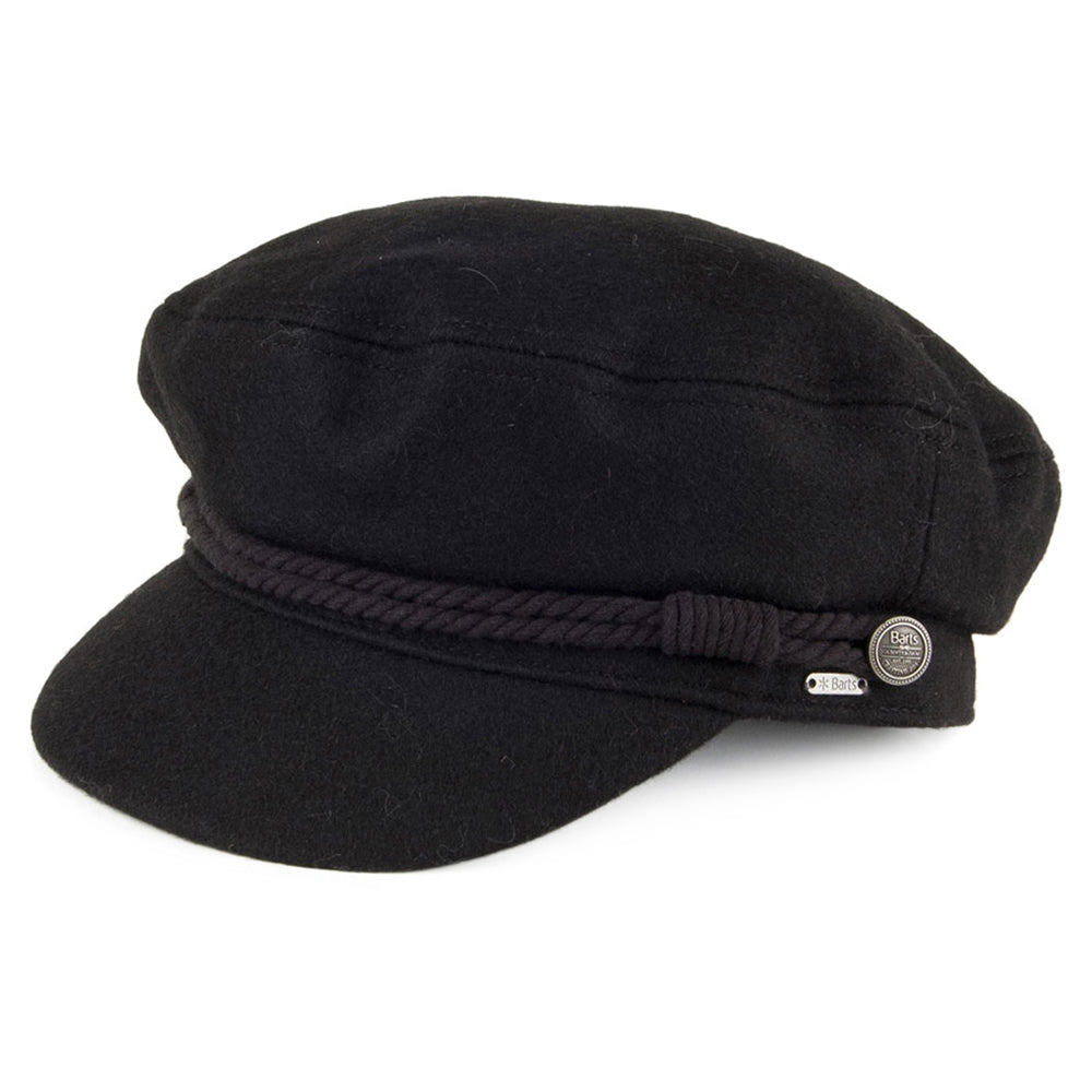 Voici la Casquette de Marin en laine Skipper noir de chez BARTS. Cette casquette comporte une doublure pour plus de confort. Cette casquette est ornée par une cordelette à l'avant, des boutons Barts sur les côtés ainsi qu'un insigne métallique Barts sur le côté.