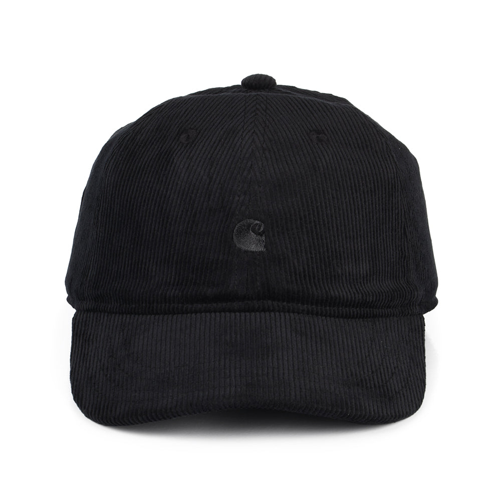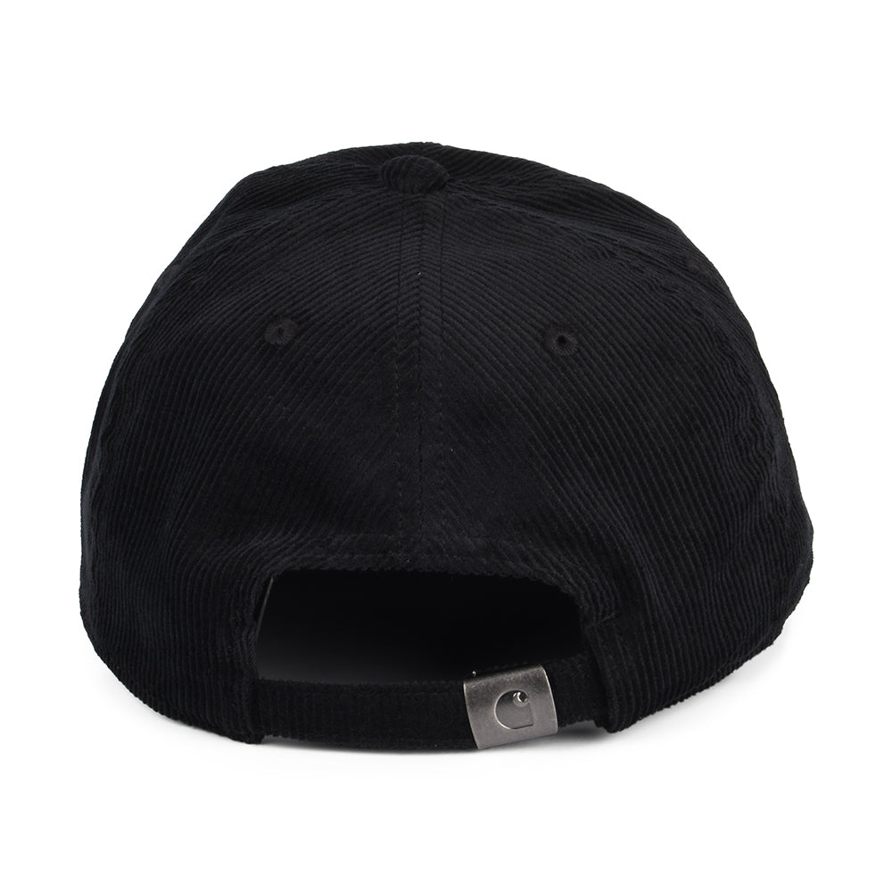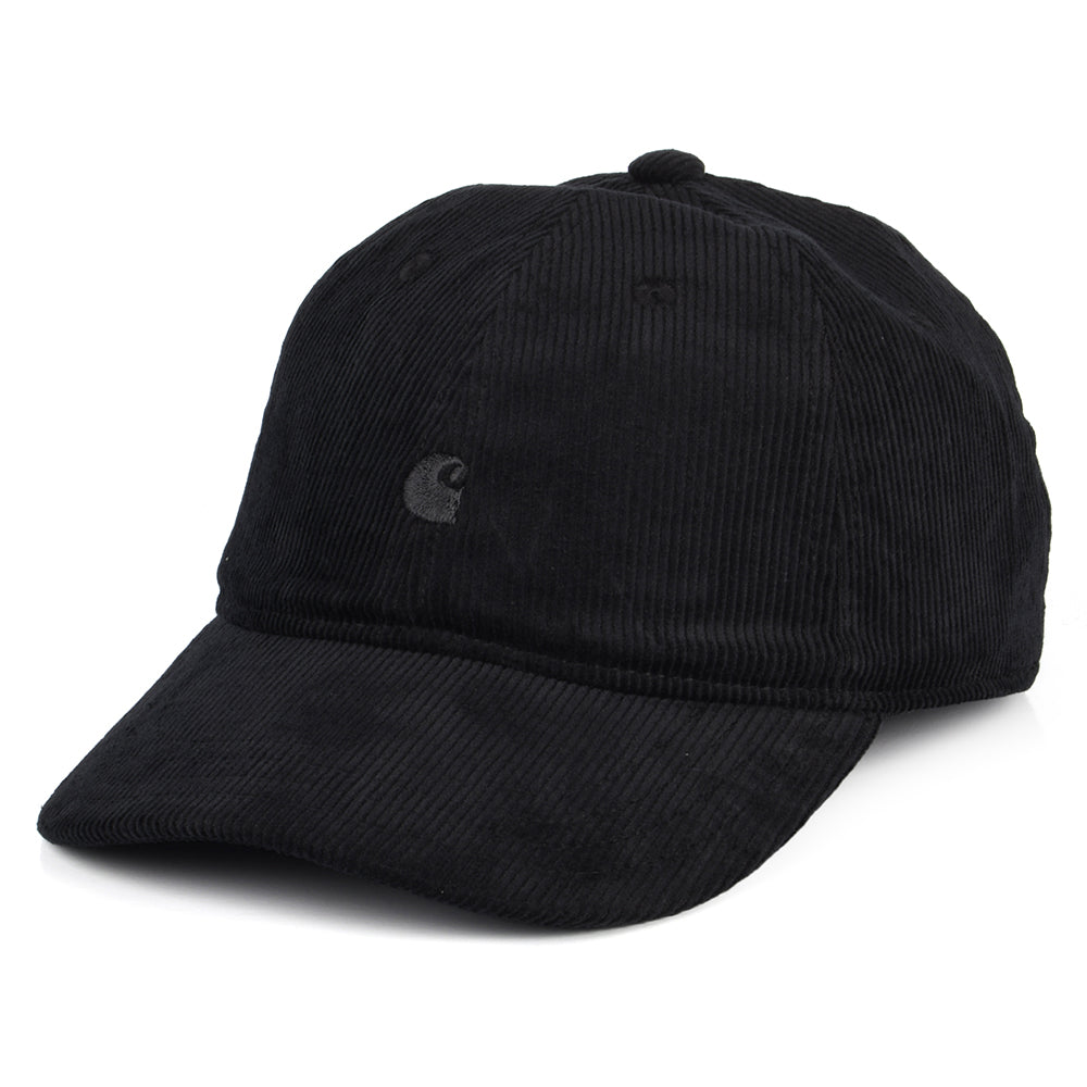 Voici la Casquette en Velours Côtelé Ton Sur Ton Harlem en noir de chez CARHARTT WIP. Entièrement conçue en coton, cette casquette est ornée du logo Carhartt brodé à l'avant de sa calotte non structurée. Cette casquette présente une visière pré-incurvée, des oeillets sur le dessus pour une meilleure aération et un strap ajustable à l'arrière pour plus de confort.