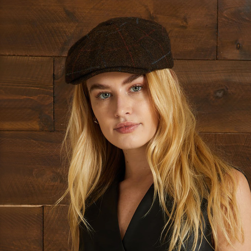 Voici la Casquette Gavroche à Carreaux et Chevrons Brood marron-noir-rouge de chez BRIXTON. Cette casquette est conçue en un subtil mélange de polyester et de laine. La calotte est doublée en satin et comporte un bandeau intérieur en coton pour plus de comfort. La calotte de la casquette est fixée à la visière par un bouton pression et l'insigne Brixton trône sur le côté.