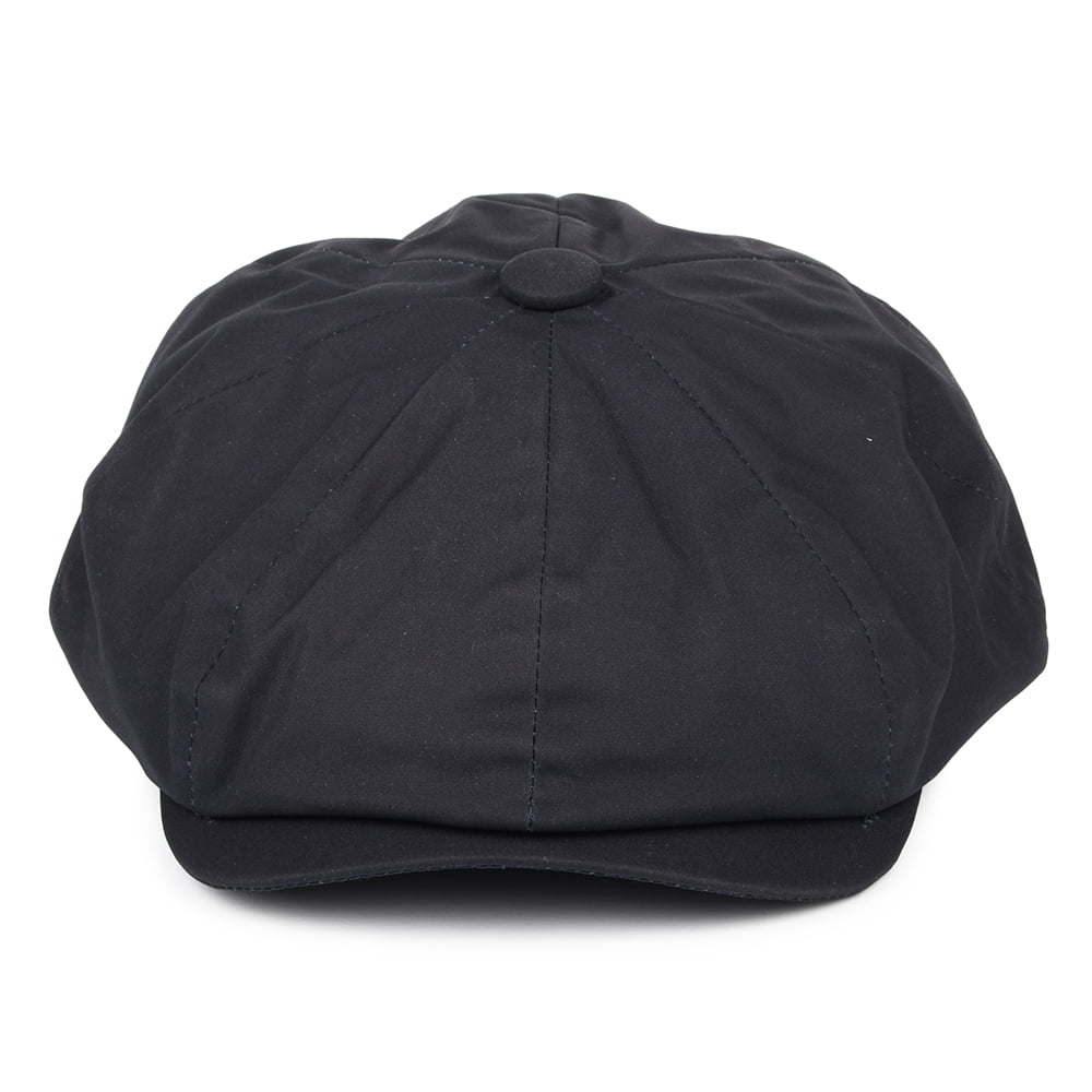 Voici la Casquette Gavroche en Coton Ciré bleu marine de chez CHRISTYS. Cette casquette, conçue entièrement en coton ciré, comporte une doublure pour plus de confort. La calotte, cousue à la visière, est hydrofuge, rendant la casquette idéale les jours de pluie fine.