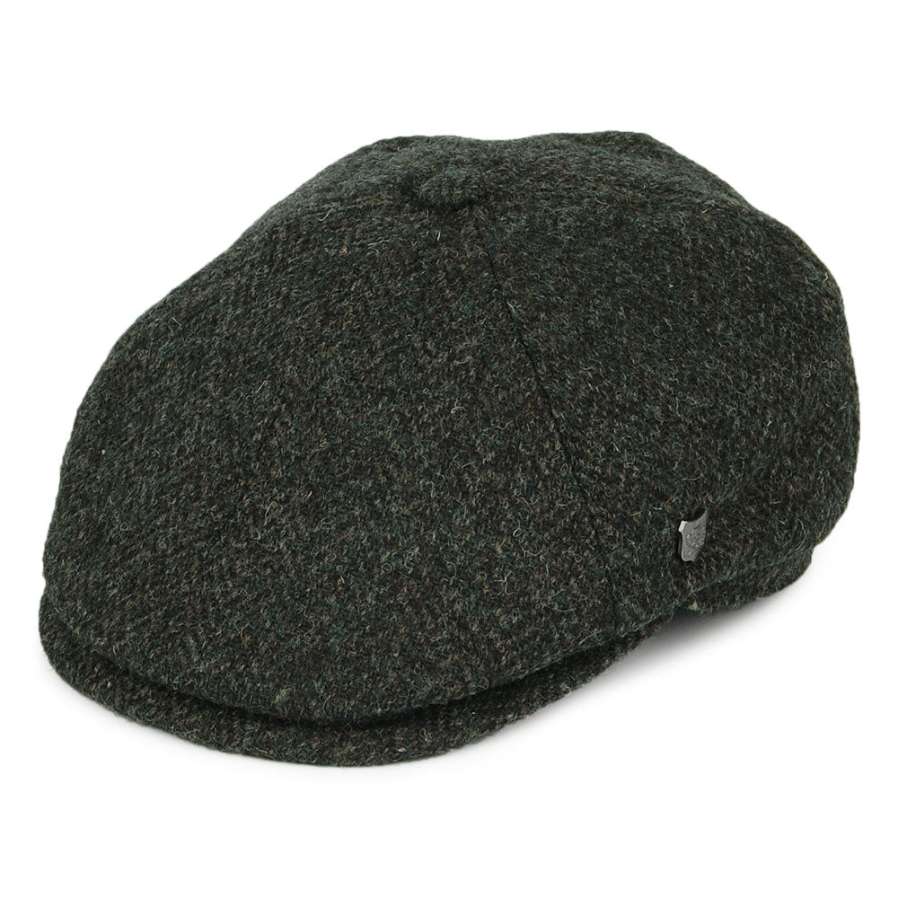 Casquette Gavroche en HARRIS TWEED à Chevrons Hudson olive FAILSWORTH