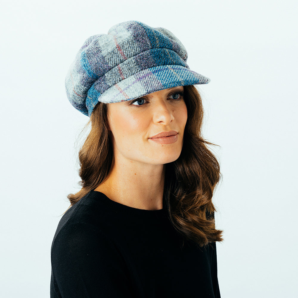 Casquette Gavroche en HARRIS TWEED Gabby mélange de bleus FAILSWORTH