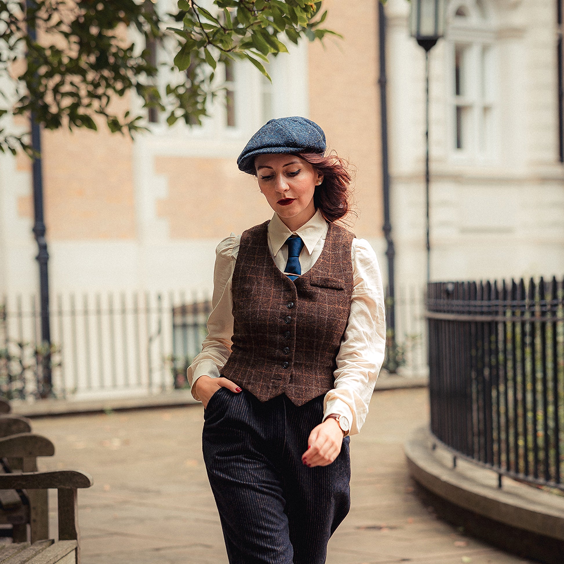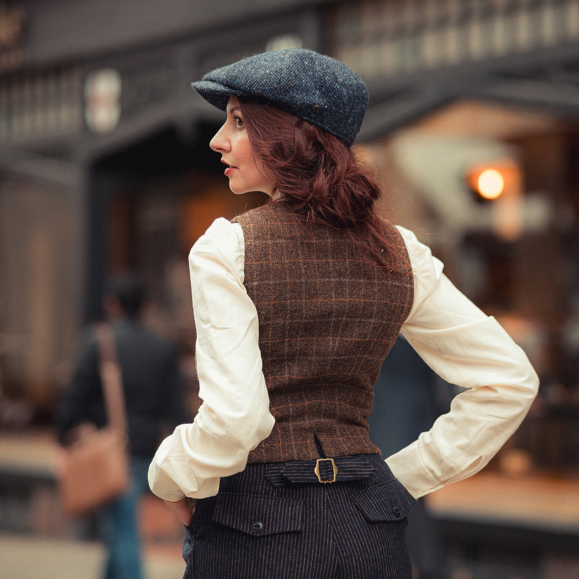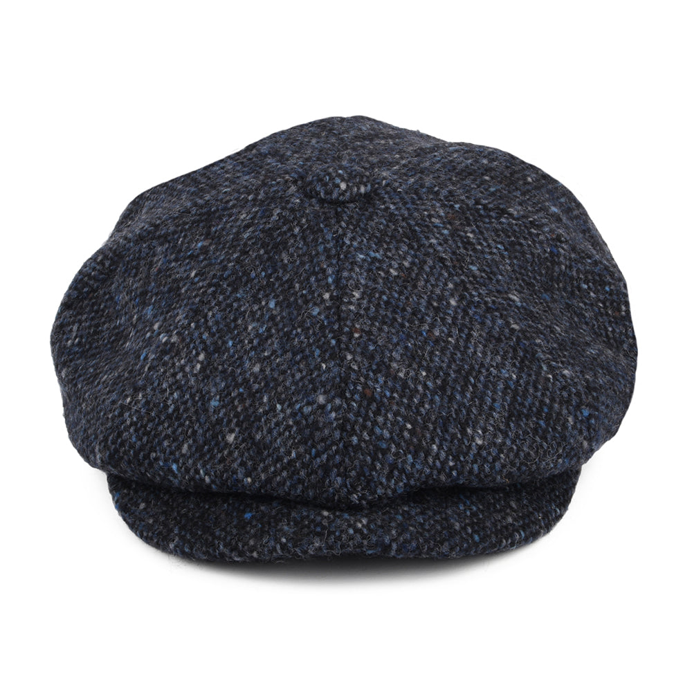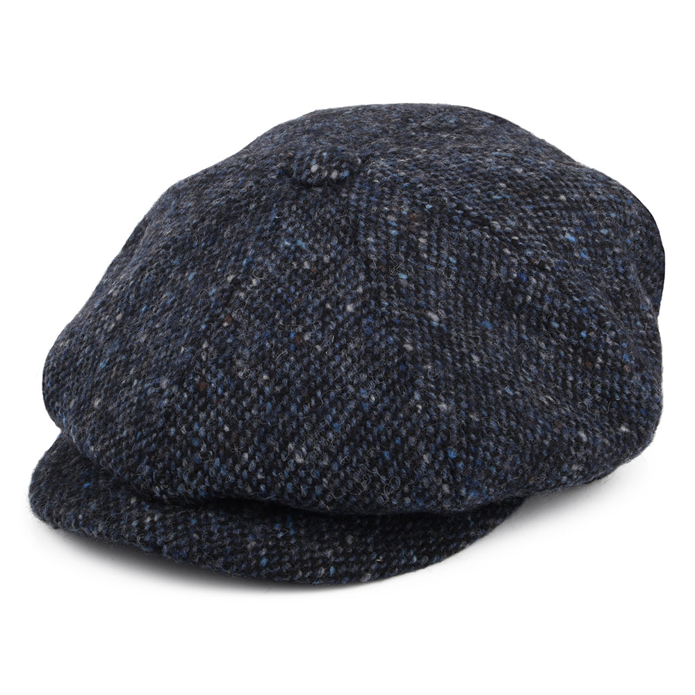 Casquette Gavroche en Tweed du Donegal Chiné Glenborin bleu-noir JAXON & JAMES