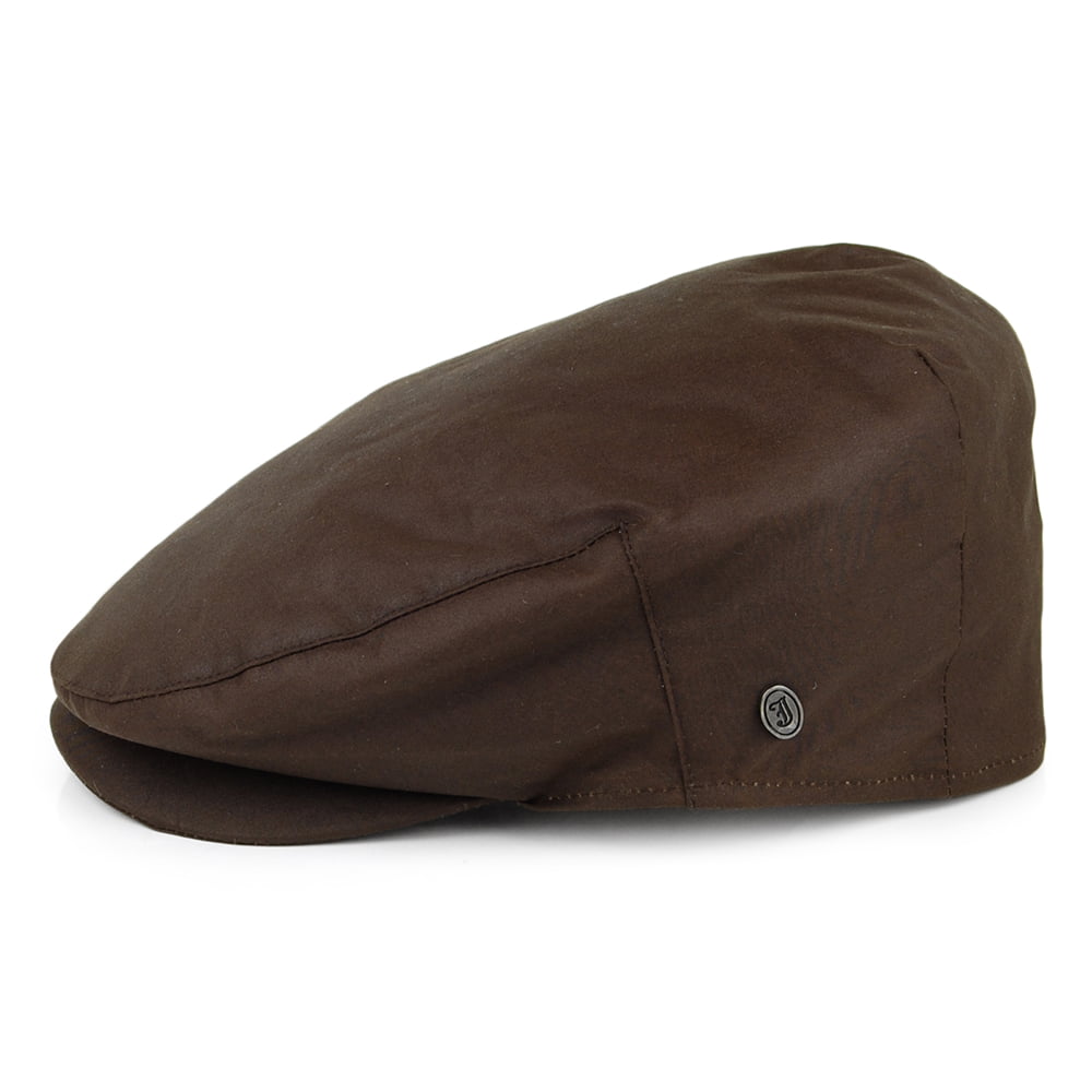 La Casquette Plate en marron de chez JAXON & JAMES est faite à partir de coton ciré fabriqué en Angleterre par British Millerain Company.