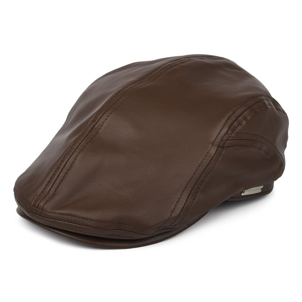 Casquette Plate en Cuir marron SEEBERGER