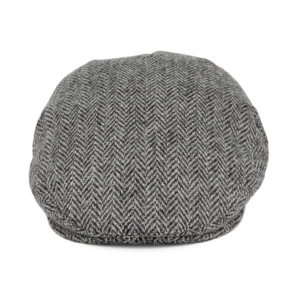 Casquette Plate en HARRIS TWEED à Chevrons Kinloch noir-gris JAXON & JAMES