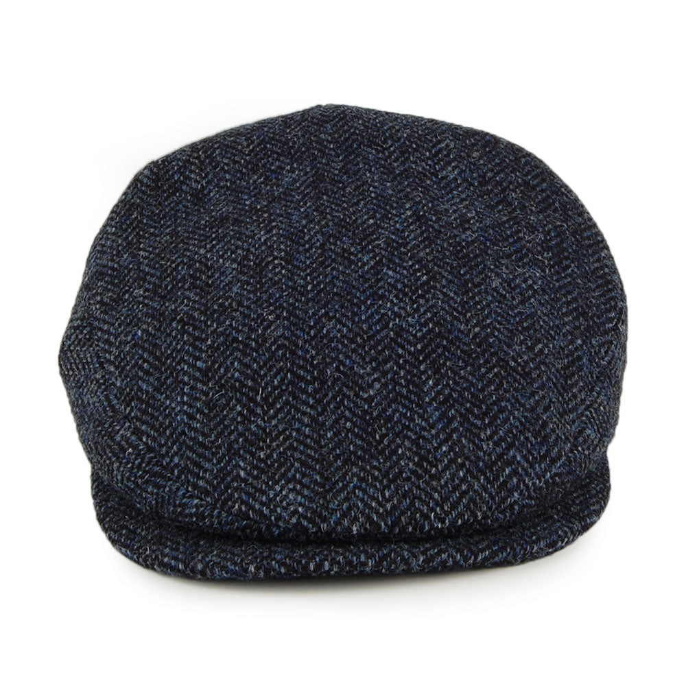 Casquette Plate en HARRIS TWEED à Visière Allongée bleu-noir CITY SPORT