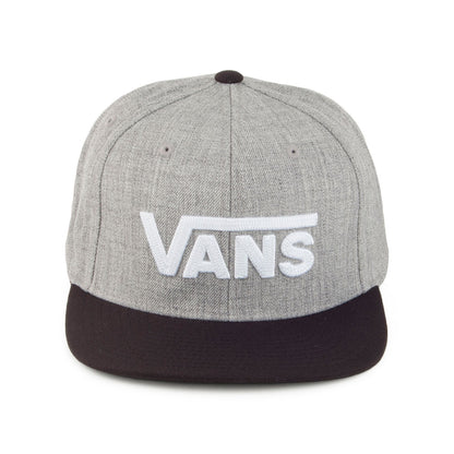 Voici la Casquette Snapback Drop V II en gris-noir de chez VANS. Cette casquette est ornée du logo Vans à l'avant de sa calotte structurée et d'une étiquette Vans à côté du snap ajustable à l'arrière. Cette casquette est finie par une visière plate et des oeillets sur le dessus pour une meilleure aération.