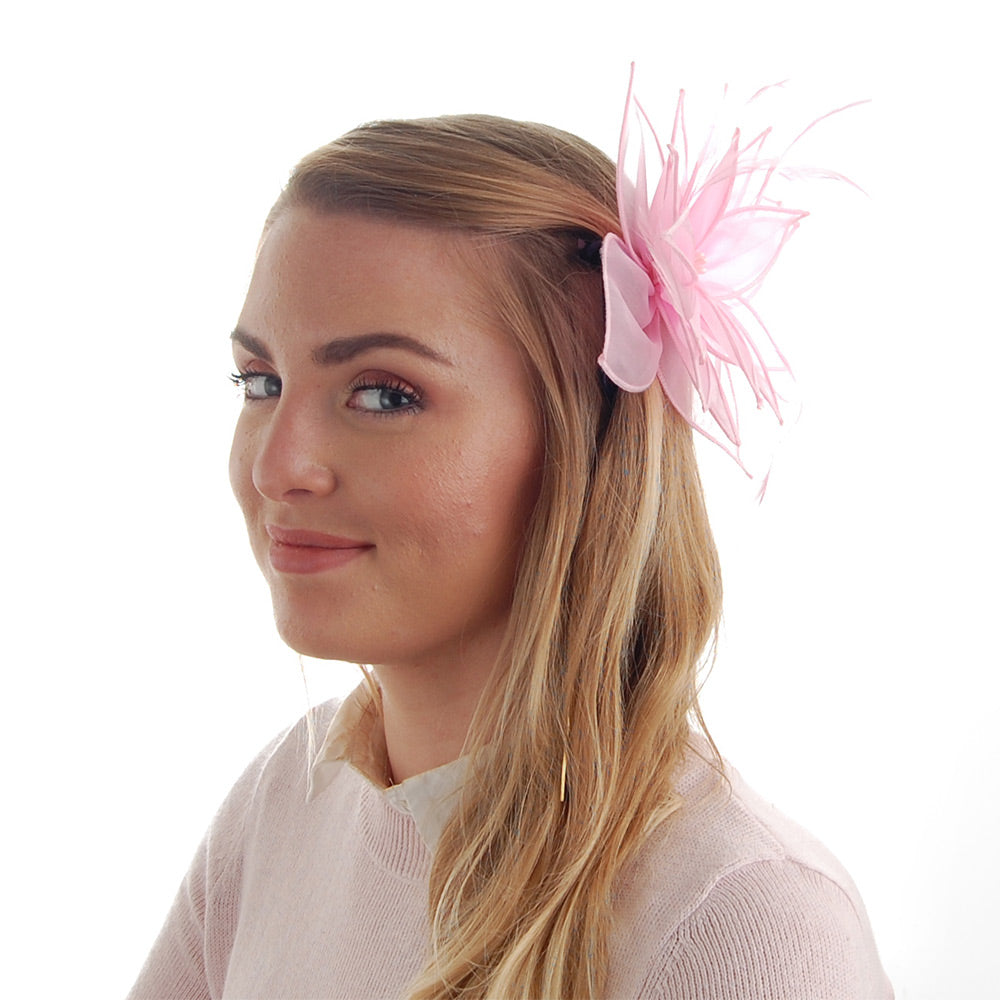 Voici le Chapeau Bibi Organza à Pince Lily de couleur rose clair de chez FAILSWORTH. Ce chapeau bibi est un accessoire idéal pour les occasions. Fait en organza, ce chapeau bibi composé de pétales accompagnés de plumes décoratives. La fleur est fixée sur pince de 9cm de longueur.
